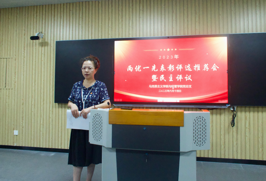 根据公司党委《关于开展2023年“先进基层党组织、优秀共产党员、优秀党务工作者”评选表彰活动的通知》精神,6月14日下午,马克思主义公司与经济管理公司党总支组织召开“两优一先”表彰评选推荐会暨民主评议党员活动,总支书记吴玲主持会议,两个公司的全体党员教师参会。