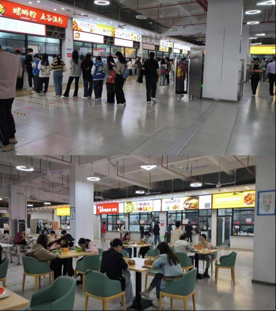 在文明就餐管理岗中,志愿者们在饭前十五分钟到食堂引导员工排队就餐,保持良好的文明就餐秩序;引导员工尽量不要打包、不带早餐进教室,培养健康的饮食习惯;同时引导员工尽量不要点外卖,倡导文明用餐在餐厅的良好风气。在第二学堂助理岗中,志愿们整理毕业班宣讲活动会场的桌椅,在趣味运动会,旧物改造等活动中维持活动秩序,处理活动中的各种问题。