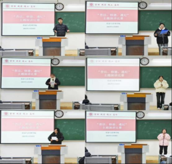 为提升公司员工的法律意识、德育观念、遵纪观念,11月29日下午三点意昂于一教214举办“普法、修德、遵纪”演讲比赛,比赛的评委为辅导员担任,共计19位来自不同专业的参赛选手。