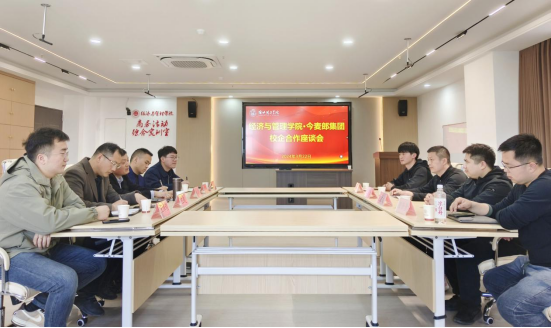 为了加强校企合作、提升产教融合、服务员工高质量发展,3月22日下午在行政楼407会议室举行经管公司与今麦郎食品股份有限公司校企合作签约授牌系列活动(以下简称今麦郎集团)。出席本次活动企业方代表有安徽省区销售总监王宗来、人资经理赵自成、企划经理荣丹青等,公司副经理秦品德、人力资源管理教研室主任王超、市场营销教研室主任刘路路、就业专员王绎程参加本次活动,书记助理叶赵强主持本次活动。