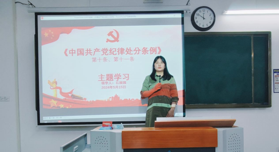 为深入学习贯彻习近平总书记关于党纪学习教育的重要讲话指示精神,学习领会新修订的《中国共产党纪律处分条例》和《中国共产党廉洁自律条例》及《中国共产党问责条例》,增强党员的纪律意识,强化正风肃纪。2024年5月15日,意昂体育经济学管理学员工党支部于一教219进行专题学习。会议由管理学党支部书记石园园领学,经济学、管理学员工党支部正式党员和预备党员以及经济学、管理学外出实习党员线上全员参加。
